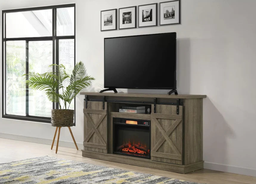 EF-128 64 INCH TV STAND WITH ELECTRIC FIREPLACE - GREY