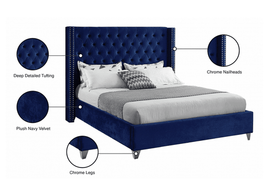 MF-101 VELVET KING/QUEEN/FULL/TWIN SIZE PLATFORM BED - BLUE