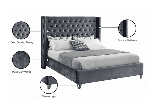 MF-104 VELVET KING/QUEEN/FULL/TWIN SIZE PLATFORM BED - GREY