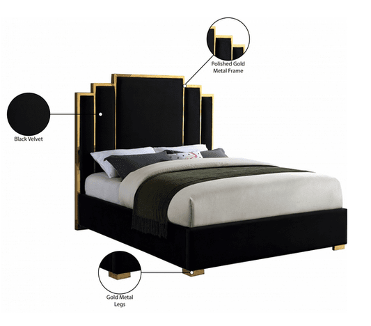 MF-196 VELVET KING/QUEEN/FULL/TWIN SIZE PLATFORM BED - BLACK