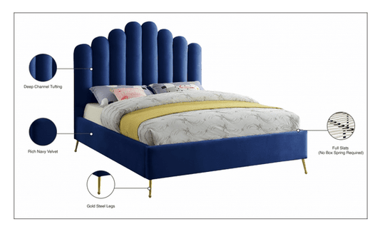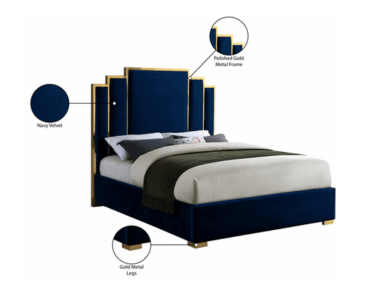MF-202 VELVET KING/QUEEN/FULL/TWIN SIZE PLATFORM BED - BLUE