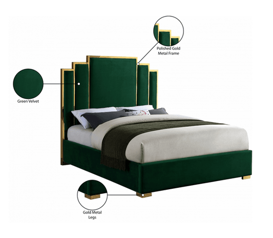 MF-198 VELVET KING/QUEEN/FULL/TWIN SIZE PLATFORM BED - GREEN