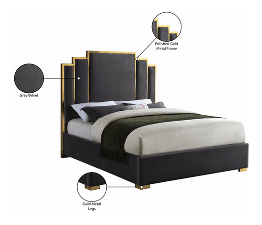 MF-175 VELVET KING/QUEEN SIZE BED - GREY
