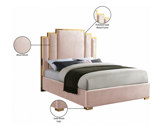 MF-176 VELVET KING/QUEEN SIZE BED - PINK