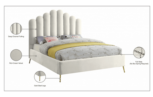 MF-203 VELVET KING/QUEEN/FULL/TWIN SIZE PLATFORM BED - CREAM