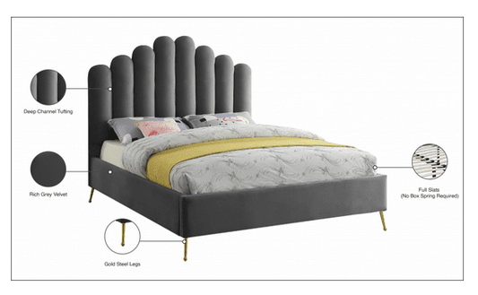 MF-199 VELVET KING/QUEEN/FULL/TWIN SIZE PLATFORM BED - GREY