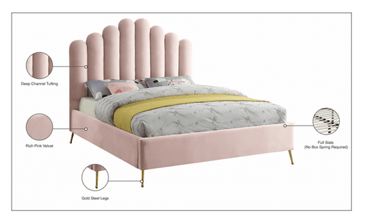 MF-205 VELVET KING/QUEEN/FULL/TWIN SIZE PLATFORM BED - PINK