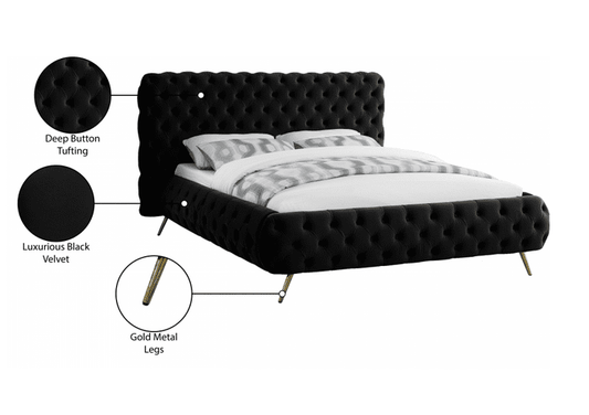 MF-142 VELVET KING/QUEEN SIZE BED - BLACK