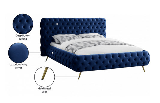 MF-152 VELVET KING/QUEEN SIZE PLATFORM BED - BLUE