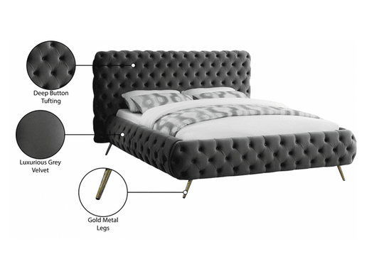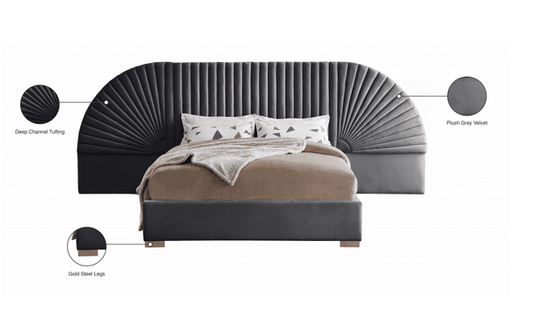MF-154 VELVET KING/QUEEN SIZE PLATFORM BED - GREY