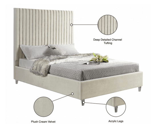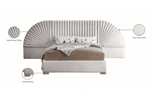 MF-144 VELVET KING/QUEEN SIZE BED - CREAM