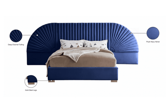 MF-143 VELVET KING/QUEEN SIZE BED - BLUE
