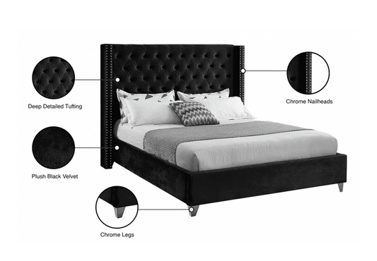MF-100 VELVET KING/QUEEN/FULL/TWIN SIZE PLATFORM BED - BLACK