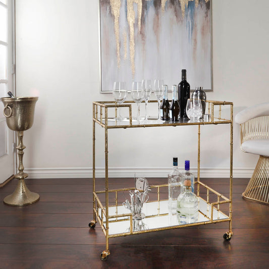 SB-100 GOLD METAL BAR CART, MIRRORED TOP