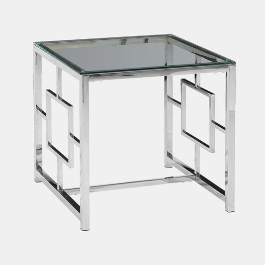SB-118 SILVER METAL/GLASS ACCENT TABLE, KD