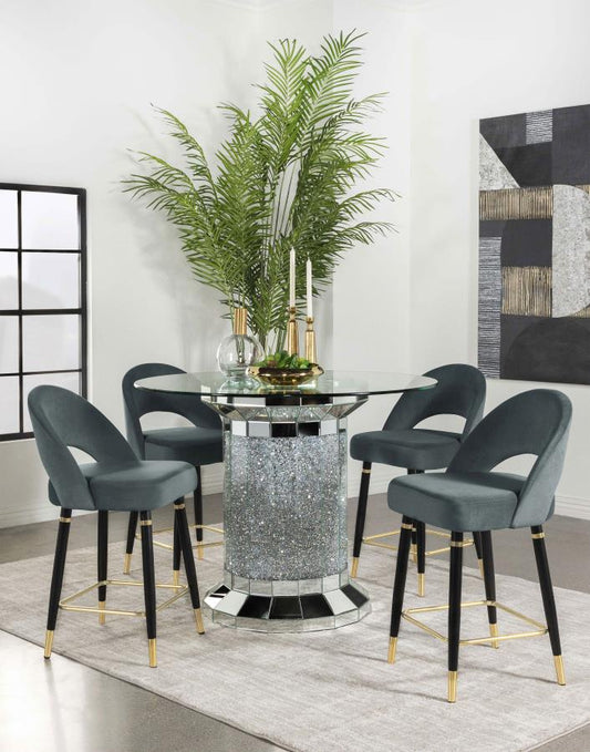 CO-106 PEDESTAL COUNTER-HEIGHT TABLE + 4 CHAIRS DINING SET - GREY