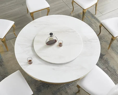 NE-127 5PCS ROUND DINING SET - WHITE & GOLD