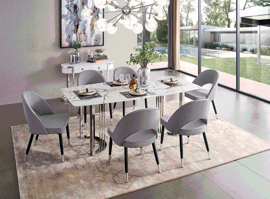 ES-105 MARBLE-TOP TABLE + 6 CHAIRS DINING SET - SILVER