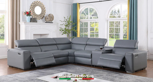 NE-152 LEATHER SECTIONAL (2 PWR) - GRAY