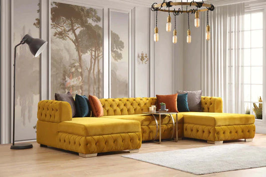 NV-178 VELVET DOUBLE CHAISE SECTIONAL - MUSTARD