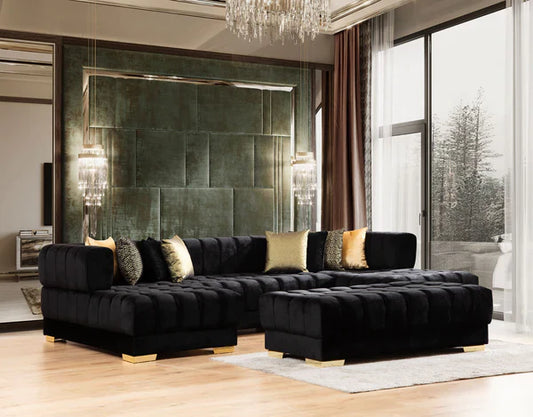 NV-100 VELVET DOUBLE CHAISE SECTIONAL - BLACK