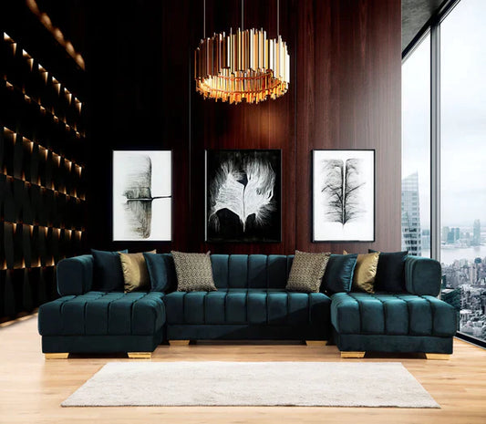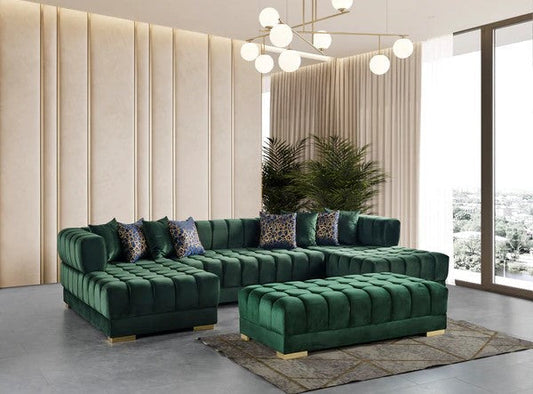 NV-102 VELVET DOUBLE CHAISE SECTIONAL - GREEN