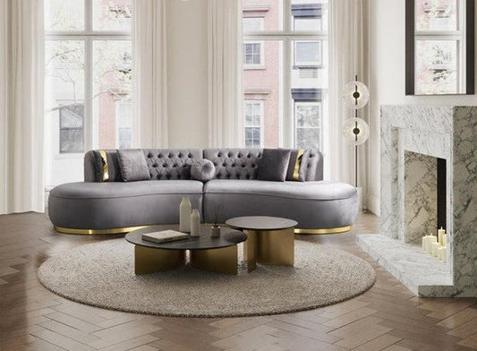 NV-123 CURVED VELVET SECTIONAL LIVING ROOM SET - GRAY
