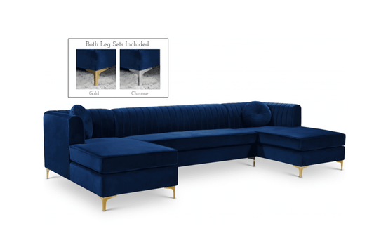NV-135 VELVET DOUBLE CHAISE SECTIONAL LIVING ROOM SET - BLACK